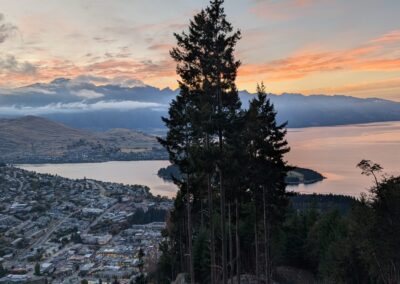 If you time it right, golden light spills over the surrounding peaks. Lake Wakatipu glows. The Remarkables look, well… remarkably smug. It’s the kind of view that makes you forget you willingly set an alarm for 5:45 a.m.